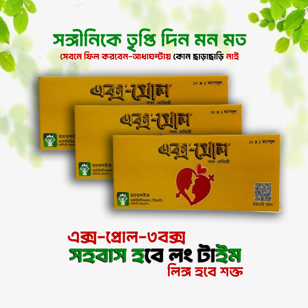 এক্স-প্রোল একটি যৌন শক্তি বর্ধক ঔষুধ। মানব শরীরের যৌন অনুভূতি সৃষ্টি করে টেস্টোস্টেরন নামক একটি হরমোন। এই হরমোনকে নিয়ন্ত্রন করে এই ঔষুধ। এটা সেবন করে আপনার স্ত্রীকে স্পর্শ করার সাথে সাথে যৌন অনুভূতি জাগিয়ে তুলবে। এটি তৈরি করা হয়েছে বিভিন্ন ভেষজ উদ্ভিদ দিয়ে যা মানব শরীরের জন্য সম্পুর্ণ পার্শ্ব প্রতিক্রিয়া মুক্ত।