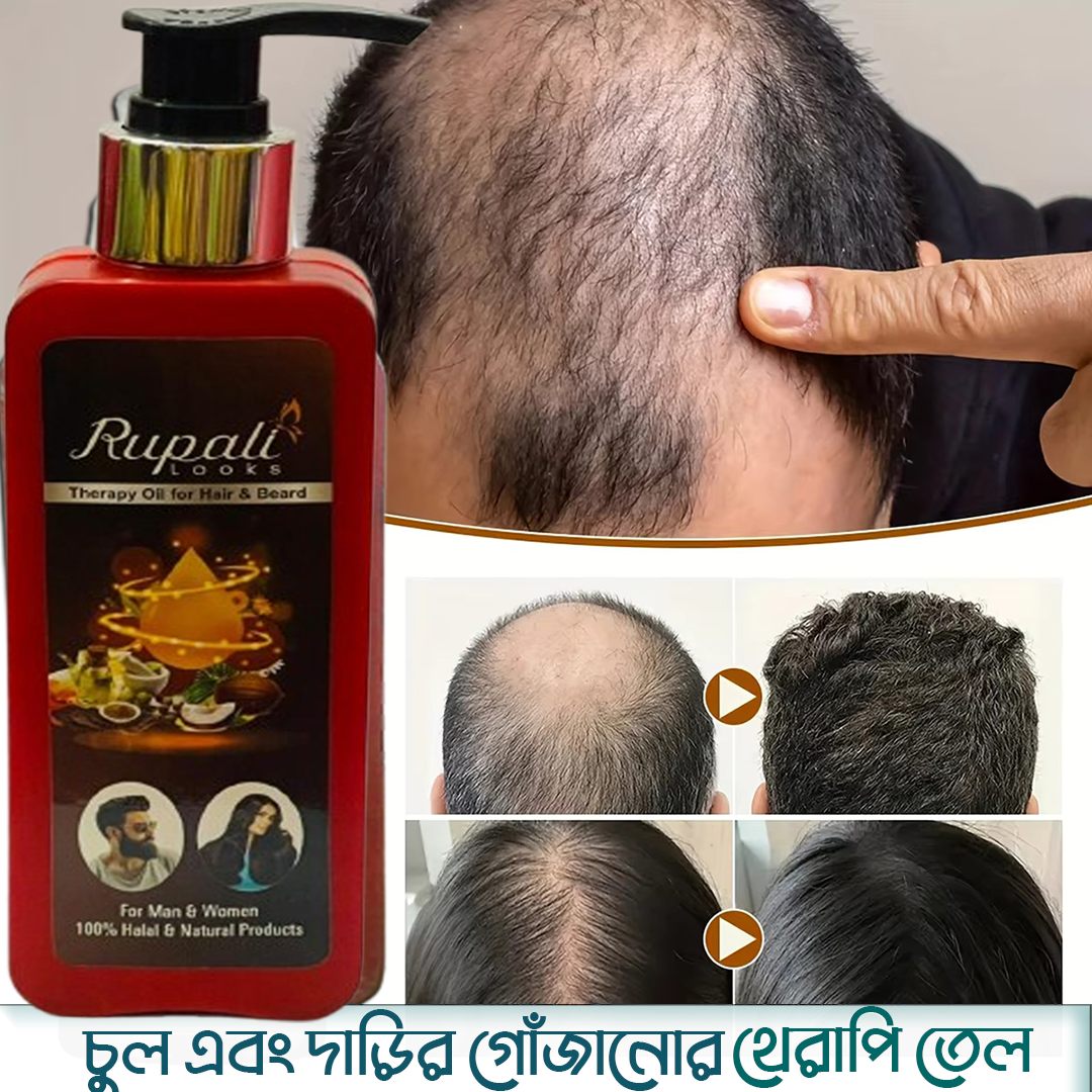 তাই চুল পড়া কমাতে আজই ব্যবহার করুন রুপালি লুকস থেরাপি তেল।