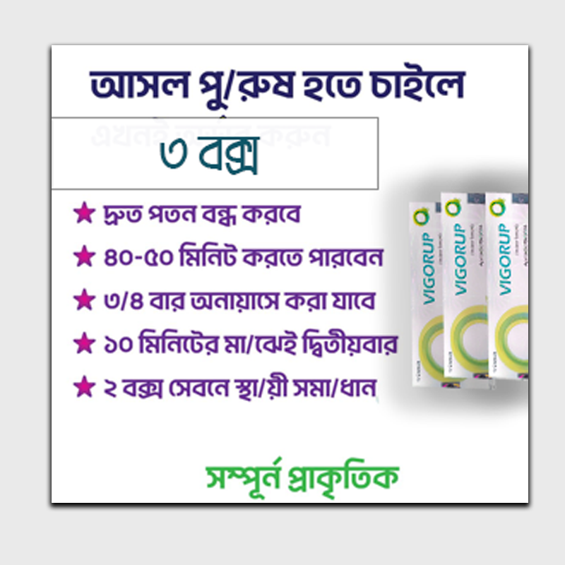 যারা উত্থান জনিত সমস্যায় ভুগছেন বা সময় কম পান, সহবাসে দুর্বল, শক্ত হয় না, তিপ্তি দিতে পারেন না, চিকন ও ছোট হয়ে গেছে, রক্ত সঞ্চালন কম, টেস্টস্টোরন হরমোন কম তাদের জন্য ফুল কোর্স ১মাসের তিন বক্স ভিগোরাপের সাথে একটি জেনিটল মালিসের তৈল ও বিশেষজ্ঞদের খাবার তালিকা একদম ফ্রি।